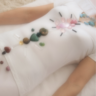 癒し波動を持つクリスタルを体のそばに配置することで、人体の波動に影響を与えていく療法です。オーラのイガイガしている所、ぶあつくなっている所、エネルギー不足の所、過多な所などにクリスタルを置いていき、クリスタルと体の間で共鳴·共振がおき、体のエネルギーがより調和のとれた状態へと変わっていきます。